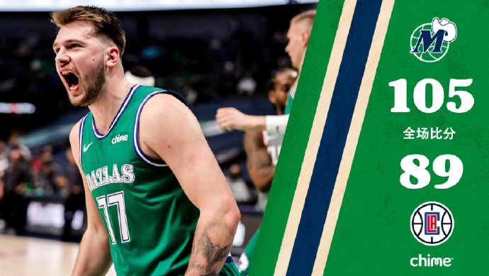 独行侠(21-18):东契奇42分6篮板9助攻3断2帽,哈达威15分6篮板,克莱伯12分6篮板,波尔津吉斯11分13篮板2帽,理查德森14分5篮板2助攻3断,布伦森5分3篮板2助攻,考利-斯坦4分2篮板