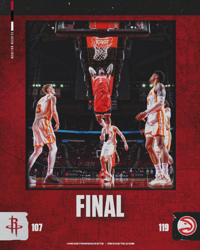 优直播3月17日讯 NBA常规赛火箭主场对阵老鹰,火箭近来已经创队史的遭遇16连败,反观老鹰近来状态不错取得5连胜。开场后虽然火箭首先进入状态,但特雷-杨和加里纳利先手找到手感帮助老鹰在首节便取得两位数优势,第二节老鹰外线手感火热一度将分差拉大到23分,但奥拉迪波和波特两人联手又为火箭咬住比分,上半场老鹰73-58领先火箭。下半场回来火箭在奥拉迪波的带领下掀起反扑,他们外线连中三分在三节结束时将比分追到只差1分。但第四节老鹰迅速调整重新建立领先,最终老鹰119-107送给火箭17连败。