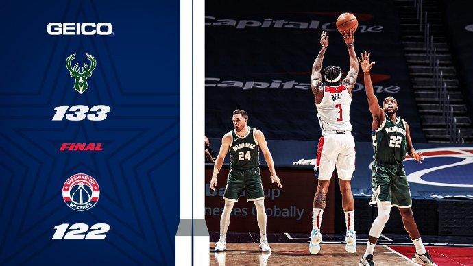 优直播3月16日讯 时隔两天,雄鹿和奇才迎来了他们的第二场较量,上一次交锋字母哥和威少互飙三双,最终还是雄鹿更胜一筹,此役比尔复出,奇才也是憋着一口气要复仇。首节雄鹿率先找到外线手感,迪文岑佐与霍勒迪用一波三分雨为球队确立了领先优势,次节波蒂斯与字母哥又联手送出10-2的攻击波将分差拉大到15分,奇才虽然能够在进攻端予以回应,无奈防守端太过拉胯,半场便让对手拿下将近70分。下半场雄鹿继续扩大战果,然而就在比赛快要被打花之际,雄鹿进攻突然断电,八村塁和比尔挺身而出一度将分差缩小到只有5分,可惜雄鹿很快便找回进攻感觉,奇才松散的防守让他们无法更进一步。最终,雄鹿133-122再次击败奇才豪取四连胜。