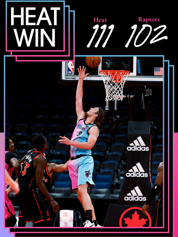 优直播1月21日讯 猛龙坐镇主场迎战热火,此役巴特勒、希罗等继续缺阵。首节邓肯-罗宾逊连中三分,帮助热火取得领先。但猛龙在次节找到外线手感给予回敬,在半场结束以58-56成功反超比分。易边再战,纳恩在第三节里突外投连续砍分,率领热火重夺领先。而猛龙在末节未能掀起追分攻势,反而陷入长达5分钟的得分荒,热火捉住机会进一步拉开比分。最终,6人得分上双的热火在客场以111-102击败猛龙,取得2连胜,同时终结了猛龙的3连胜。