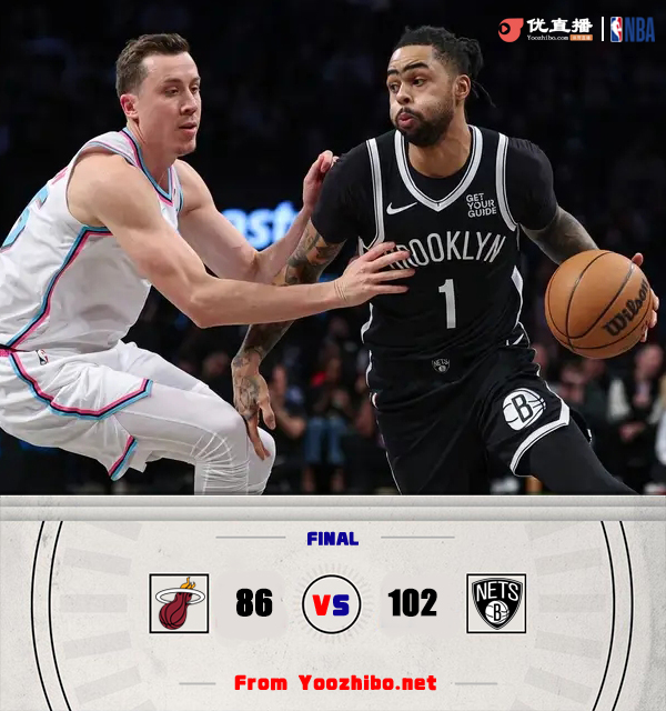 优直播讯 北京时间2月8日讯 NBA常规赛,热火对阵篮网,热火上场比赛力克76人,篮网则是不敌奇才。开场后阿德巴约带领热火率先打出攻势,随后篮网外线多点开花掀起反扑将比分反超,罗齐尔替补登场后状态火热接连拿分,热火在第一节后半段到第二节开局打出一波高潮夺回领先。篮网多点开花紧追不舍,并且在半场结束前连得7分将比分追平。易边再战,克拉克斯顿在内线表现活跃,阿德巴约强势回应联手希罗帮助热火再度建立领先。最后一节热火进攻断电,篮网一举反超比分并将分差拉大到两位数,最终篮网102-86扑灭热火。