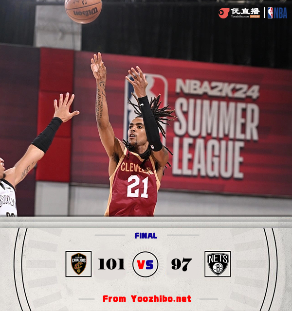 优直播讯 7月8日 NBA拉斯维加斯夏季联赛开打,骑士首战面对篮网,骑士这边大莫布里领衔出战,篮网阵中,二年级生大卫-杜克和今年的21号秀诺厄-克洛尼在列。比赛开始后双方火热对攻,杜克先声夺人,大莫布里联手贝茨强势回应,末段篮网进攻突然断电,骑士内外开花狂轰19-2攻击波,首节结束时骑士确立11分优势,次节回来,沙里夫-库珀手感滚烫单节独得14分,篮网进攻逐渐复苏,阿尔莫尼-布鲁克斯率队回应,比分没有被进一步拉开,半场战罢,骑士依然领先14分。易边再战后场上形势风云突变,篮网一波17-3抹平分差,克雷格-波特上篮短暂止血,但篮网再次打出9-2小高潮一举反超,三节结束后篮网反超4分,末节决战,贝茨连中三分率队追分,梅里尔打成3+1后骑士再度反超,决胜时刻库珀连续取分,布鲁克斯三分续命无奈篮网追分未果,最终骑士101-97险胜篮网。