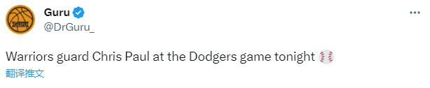 38岁的保罗反戴棒球帽、戴着墨镜观看道奇队的比赛,咧嘴大笑十分开心;现场镜头抓拍到保罗,在简介中写着“12次全明星、勇士后卫”;保罗被贴上勇士后卫的标签引热议,名记Chris Montano发推表示:克里斯-保罗,勇士后卫,看起来太奇怪了。