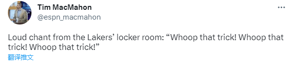 赛后湖人更衣室连续高呼“Whoop that trick(揍扁他们)”,继续庆祝黑七晋级半决赛。