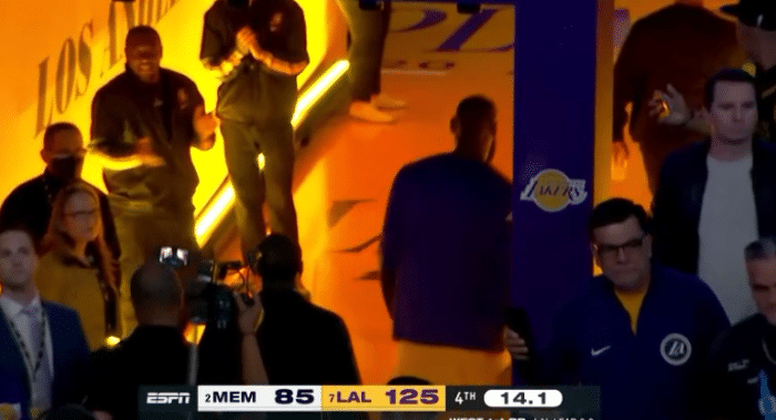 最后时刻,詹姆斯提前离场返回更衣室;拉塞尔、八村垒等湖人球员在湖人替补席模仿灰熊众将的入场的griddy舞蹈,嘲讽对手并且跳舞庆祝,八村垒冲着灰熊替补席喊:揍扁他们。