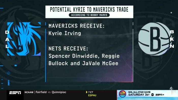 Bobby Marks列出独行侠3换1交易方案:独行侠送走丁威迪、布洛克和麦基,从篮网得到欧文。