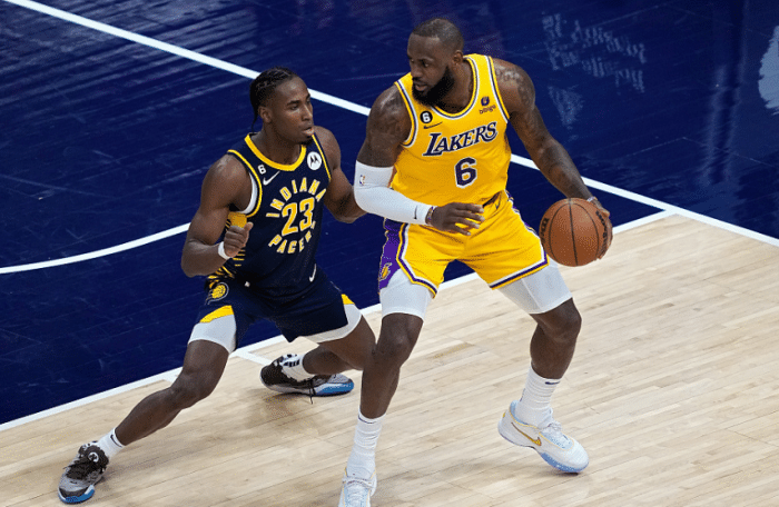 末节詹姆斯上场后空切上篮,湖人8-2缩小分差,内史密斯和哈利伯顿三分回击,暂停回来,詹姆斯点飞特纳突破上篮,特纳轻松得分,施罗德助攻浓眉扣篮,浓眉助攻贝弗利轰进三分,贝弗利关键抢断被吹犯规,他跪地捂脸十分懊恼,湖人挑战成功;之后詹姆斯轰进关键三分,抢到关键篮板,杀到禁区造犯规两罚全中,最终湖人拿下比赛。