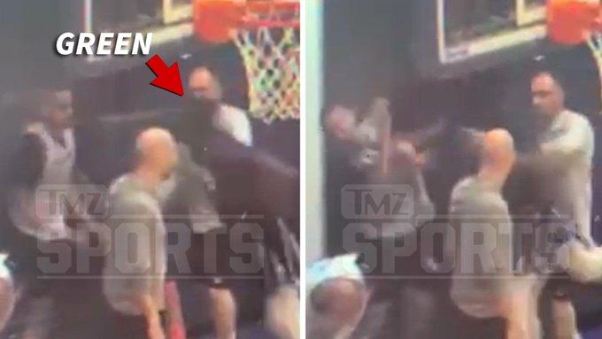 当时库里就在现场,不过他背对着格林和普尔,冲突发生后,库里并没有第一时间冲过去。