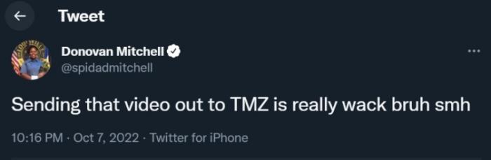 骑士球星米切尔发推写道:把这个冲突视频发给TMZ真的是太奇葩了;之后米切尔删除了这条推文。