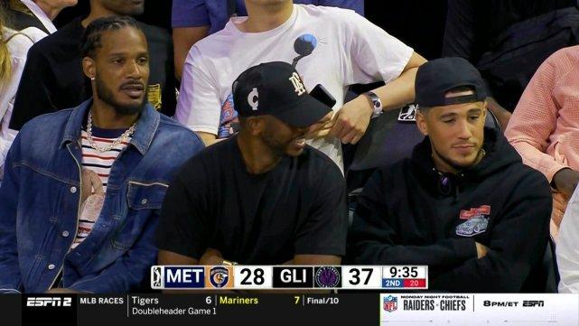 能跟文班亚马抢状元的亨德森,也绝不是泛泛之辈。半场结束时,亨德森12中7,拿下18分,文班亚马9分2盖帽,但有3次犯规。点燃队71-52领先大都会92队。