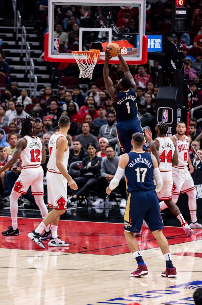 第一节7分40秒左右,锡安持球一步过掉帕特里克-威廉姆斯,杀到禁区上演势大力沉的双手暴扣,胖虎又飞起来了;锡安第一节打了4分58秒,3投2中拿到5分2篮板,身体状态很不错,心情也很好。