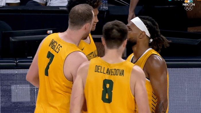 下半场,杜兰特外线接连投进两记三分,利拉德外线同样稳准狠——45度角后仰三分和虚晃急停三分全都命中;可美国男篮突然哑火,还失误不断,被澳大利亚打出19-6攻势,澳大利亚压哨三分太狠,美国男篮单节18-32净输14分,三节落后5分。