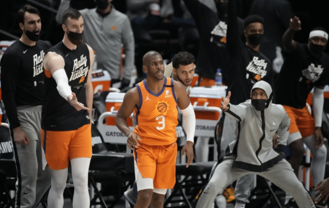 数据网站FiveThirtyEight给出了太阳有94%几率赢下西部决赛,也就说太阳拥有超过9成的几率杀入总决赛,由此可见在快船1-3落后太阳之余,数据模型已经很难给到快船信心,太阳并非是一支弱旅,在保罗加盟之后,原本就拥有天才阵容与天赋的太阳如同有了首领,他们可以告别鱼腩并一跃成为西部战绩第二以及西决3-1领先的球队,除了当家球星布克之外,保罗的才华、经验与关键时刻的作用至关重要。