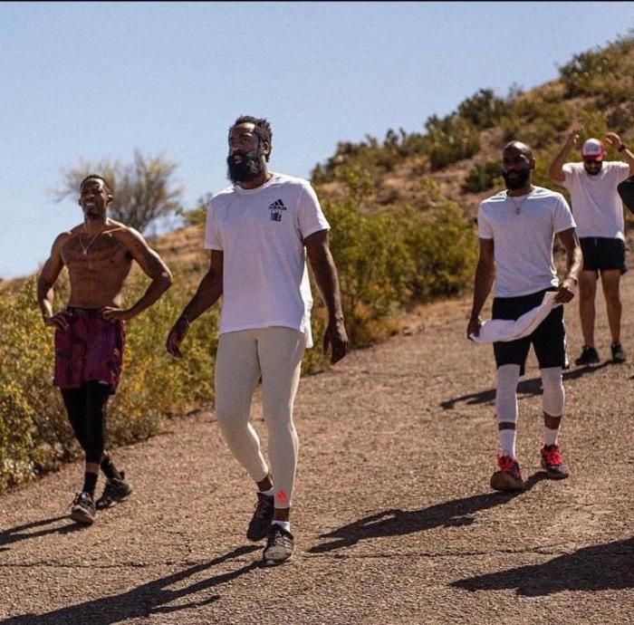 在比赛暂停的日子里面,哈登带着女友Shy来到了亚利桑那州训练,对于这个小女友,哈登还是很上心的,毕竟此前咱们什么时候看过哈登连训练都会带上小女友。