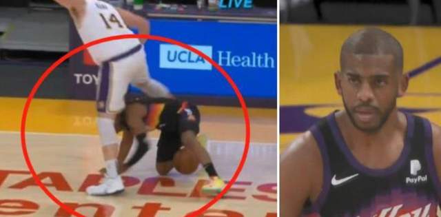 来源:优直播05-10 16:49优直播讯 北京时间5月10日NBA常规赛继续进行,湖人主场123:110击败太阳。比赛过程中出现了让人印象深刻的一幕。比赛进行到第2节时,保罗和小加索尔发生对抗,保罗跌倒后小加索尔为了避免直接撞上保罗,选择跨过保罗。保罗随后抱怨此动作反而被裁判吹罚技术犯规,引来不少球迷的热议。