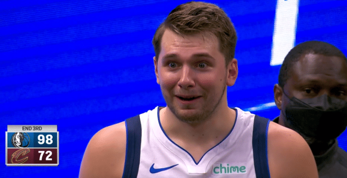 当时东契奇第一反应是瞪大双眼,一脸不敢相信的表情,此事引热议,名记晒出东契奇一系列表情变化,瞪眼、吃惊、苦笑等等,瞪眼表情已成为表情包。