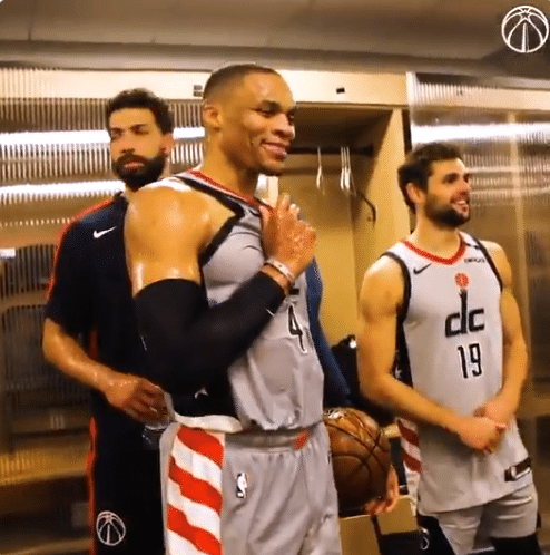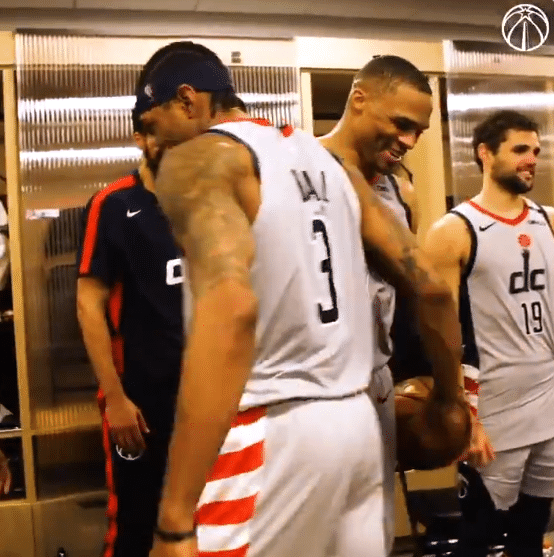 奇才更衣室泼水庆祝!韦少浑身湿透,全程抱球笑得合不拢嘴+感谢全队