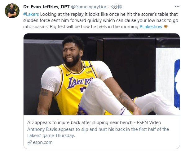 来源:优直播05-07 15:08优直播讯 北京时间5月7日,湖人24分惨败快船,赛季三战全败遭快船横扫,浓眉仅仅只打9分钟9投2中拿到4分,因背部痉挛而提前退出比赛;赛后浓眉透露自己的脚踝感觉很好,背部伤势也没有那么痛了,计划出战下一场与开拓者的比赛。