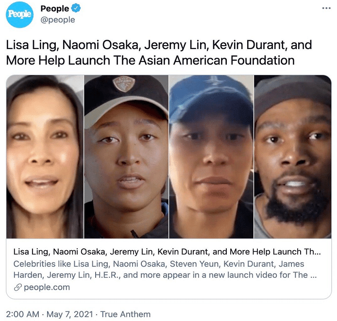 来源:优直播05-07 11:50优直播讯 前段时间外媒报道篮网老板蔡崇信联合沃尔玛、美国银行和NBA联盟等一起成立亚裔基金会,其中蔡崇信和雅虎联合创始人杨致远等人承诺投入1.25亿美元,沃尔玛和NBA联盟等筹集1.25亿,加起来是2.5亿美元,用于支持亚裔社区发展、改变外界对于亚裔的看法,这样的举动收获了外界一片的赞誉。而现在传来消息,凌志慧、大阪直美,林书豪以及凯文杜兰特协助成立了亚裔基金会。