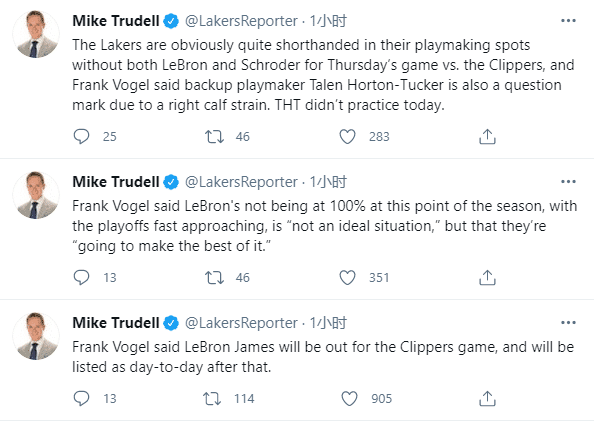 詹姆斯和施罗德都缺席洛杉矶德比战,霍顿-塔克也受伤了,右小腿拉伤被列为可能出战,今天没有参加训练,如此情况真是让湖人的控卫位置显得捉襟见肘。