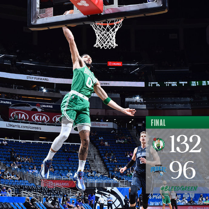 凯尔特人132-96大胜魔术 塔图姆三节打卡27+7 沃克32分