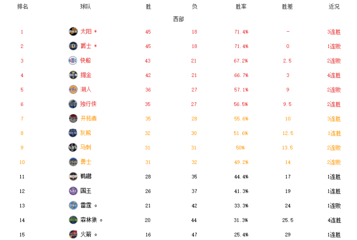 太阳反超爵士登顶;