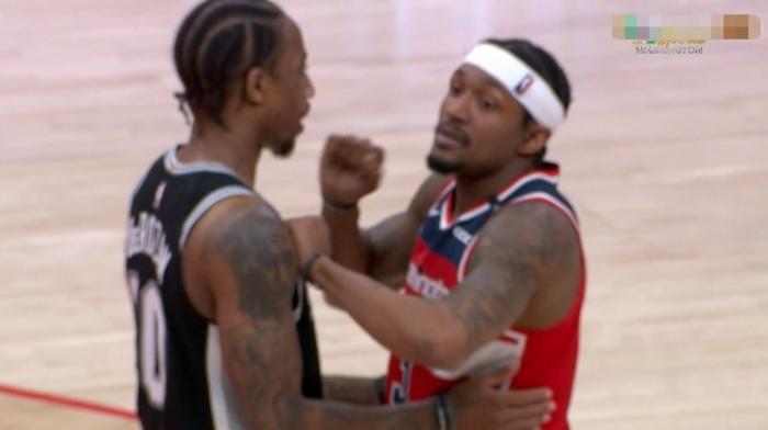 决战时刻德罗赞和威少神仙打架,几个高能回合后硬是平分秋色,比尔命中扳平球后双方进入加时赛。加时赛比尔独得8分一人撑起了奇才的进攻,奈何双拳难敌四手,约翰逊和穆雷的得分让马刺再度占得先机,随着比尔最后三分不中最终憾负!