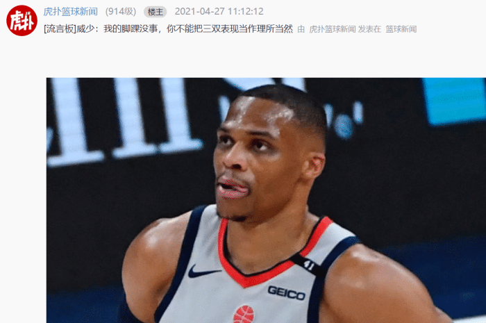 差7个超大O!威少:如果有球员认为拿三双很容易,那他们可以去试试!