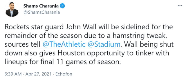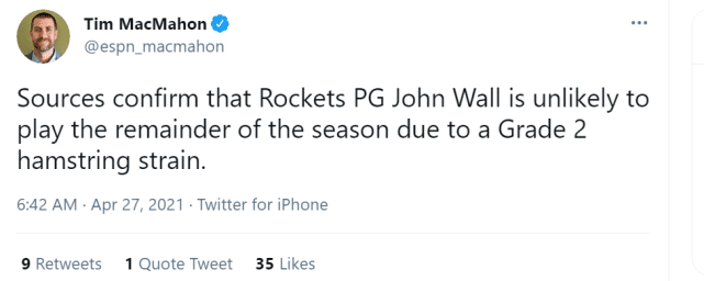 腿筋二级拉伤!沃尔赛季报销仅为火箭出战40场,大合同还剩近亿美元