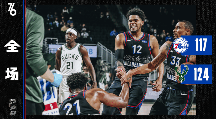 来源:优直播04-23 19:07优直播讯 北京时间4月23日,排在东部第三的雄鹿以124-117击败第一的费城,送给东部第一3连败。字母哥独砍27分16篮板6助攻,展示了极强统治力。米德尔顿24分5助攻,霍勒迪12分4篮板11助攻,雄鹿三巨头威力十足。费城的恩比德砍下24分3篮板3助攻,哈里斯18分6助攻,替补的米尔顿20分3篮板4助攻。