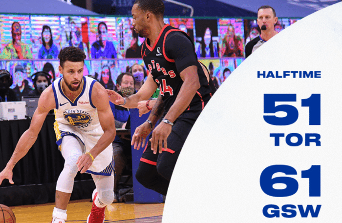 在上半场的比赛中,虽然勇士一直掌控主动权,但库里遭遇猛龙严防几乎隐身,前两节,萌神投篮7中1三分4中0仅得到3分5篮板3助攻!好在队友都站出来给予了足够的支持!上半场,勇士取得10分领先!