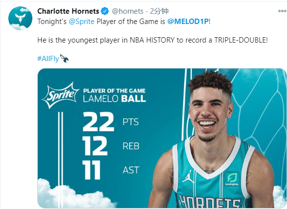 20年探花三球正式成为NBA历史最年轻三双先生,与此同时名记shams发推写道:2017年11月,湖人新秀郎佐-鲍尔超越詹姆斯成为历史最年轻三双球员;如今三球超越富尔茨成为新的最年轻三双球员,鲍尔兄弟都是超越状元创造历史,球爹又可以疯狂吹牛了。