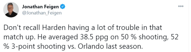 当然,历史只是历史,哈登对步行者只得15分,而之前三次面对步行者,他都砍下了40+的高分。