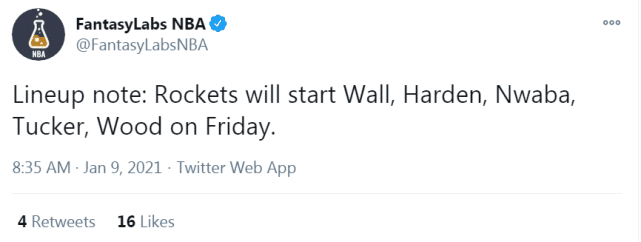 这是火箭的第7场比赛,他们已经使用过5套不同的首发阵容。这段时间,伤病和隔离给赛拉斯的排兵布阵带来了不小的困难。