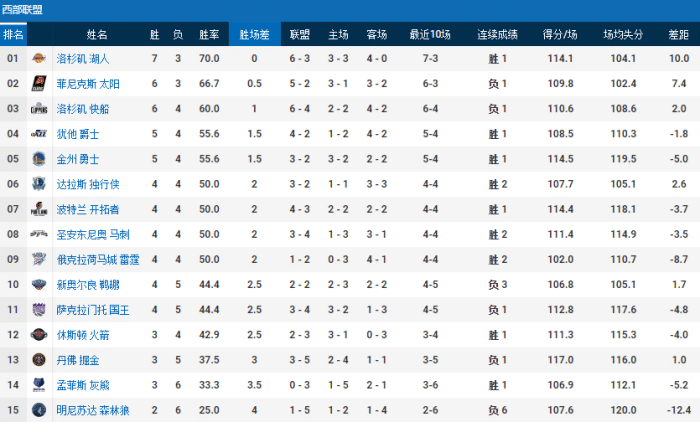 来源:优直播01-09 14:34优直播1月9日讯 今天NBA常规赛一共进行了10场比赛,其中西部多支豪强翻车,其中就包括了鹈鹕输给黄蜂、太阳加时赛兵败给活塞,快船被勇士上演22分大逆转等等,这也让西部的排名发生了翻天覆地的变化,这其中有一个最大的赢家,那就是湖人,因为快船和太阳的输球,所以他们渔翁得利,从第三升至第一。