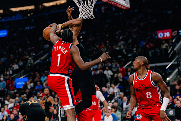 昨天快船在主场击败联盟第一的骑士,比赛期间,哈登戏耍莫布利一球引热议,当时哈登在外线持球单挑莫布利,疯狂炒菜后大秀双变向,晃晕莫布利秀翻全场,登哥更是双手抱头激情庆祝。