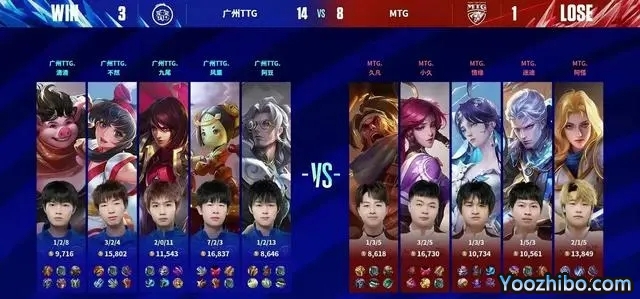 优直播讯 北京时间03月16日,在KPL第二场比赛中,广州TTG以3-1的比分击败了MTG,拿下了第二轮常规赛A组的第二个积分。