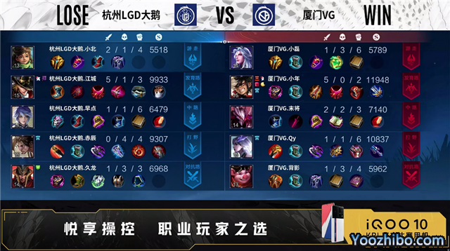 优直播讯 北京时间7月20日2022年KPL夏季赛常规赛第二轮第四周第一日第一场,由厦门VG对阵杭州LGD大鹅,以下是本场比赛快讯: