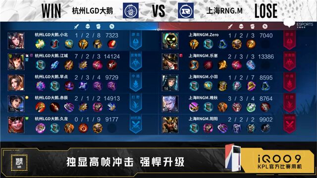 优直播讯 北京时间07月14日,2022年KPL职业联赛夏季赛常规赛第二阶段第三周第二个比赛日第一场比赛结果已经尘埃落定,最终的比赛结果是:上海RNG.M三比二战胜杭州LGD大鹅。