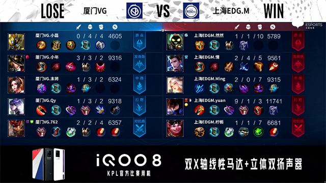 优直播讯 9月30日2021年KPL秋季赛常规赛第二周第二日第三场,由厦门VG对阵上海EDG.M,以下是本场比赛快讯。