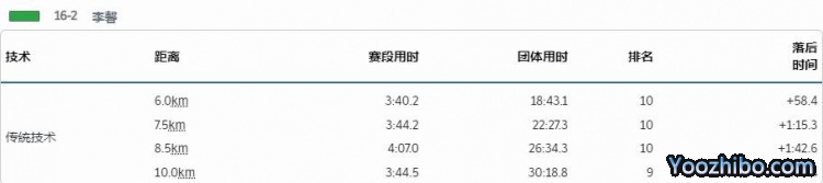池春雨第一棒出战,用的是传统技术,最终她滑完5公里用时15分02秒9,落后第一名41.6秒,排名第9。