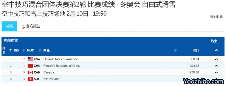优直播讯2月10日讯 空中技巧混合团体决赛第2轮(决赛轮)今晚开战!第1轮中,中国队排名第一,是金牌的有力争夺者。