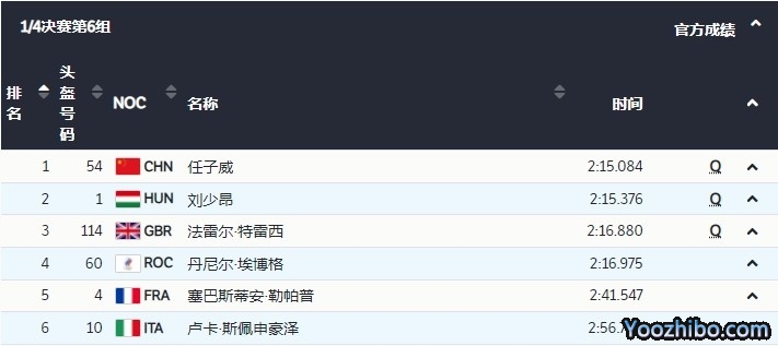 优直播2月9日讯 短道速滑男子1500米四分之一决赛,中国选手任子威、孙龙、张添翼出战。孙龙第二组出战,他中段领跑但后半段被影响节奏,最终成绩2分19秒244排名小组第四,最终无缘晋级;张添翼第五组出战,他中段试图领跑但随后突然打滑直接出界,最终无成绩无缘晋级。最后一组任子威出战,他在中段排在第四名,不过最后只剩3圈时直接弯道超越,最终以小组第一晋级半决赛。