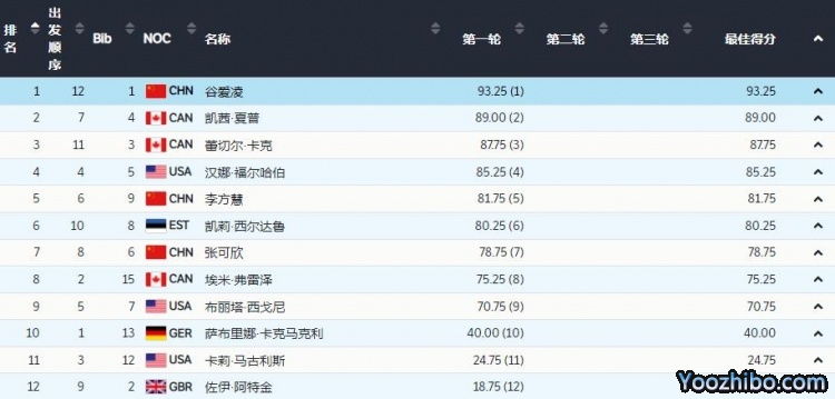 优直播 冬奥会自由式滑雪女子U型场地技巧决赛的比赛打响,在前面资格赛的比赛里,中国选手谷爱凌上演了完美的发挥,第一跳她跳出了93.75分的超高分,第二跳95.50分,两跳无论取那一跳都以第一晋级决赛,另外中国的两名小将张可欣、李方慧也是晋级决赛,吴梦则是比较遗憾无缘决赛。