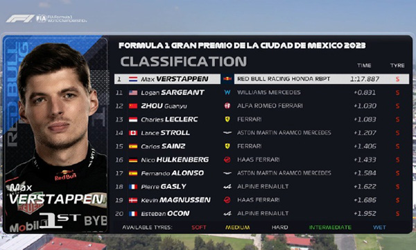 优直播讯 北京时间10月29日,2023F1墨西哥城大奖赛三练最终成绩:维斯塔潘跑出1:17.887,包揽三次练习赛的头名。阿尔本落后0.070秒排名第二,威廉姆斯车队状态不错!主场车手佩雷兹位列第三,与维斯塔潘单圈有0.139秒的差距。