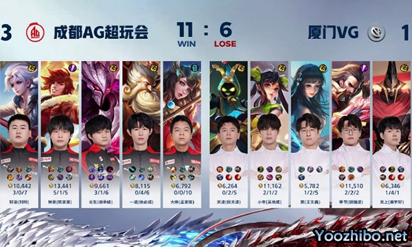 优直播讯 北京时间02月02日, 2024KPL春季常规赛第一轮W1D3,本场比赛成都AG超玩会 3:1 厦门VG。