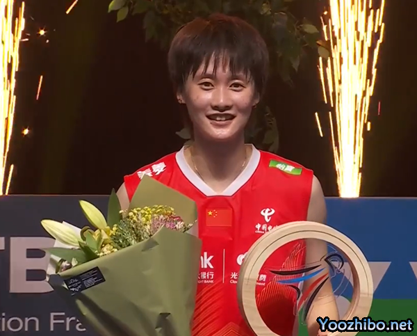 优直播讯北京时间10月29日,2023年法国羽毛球公开赛女单决赛,陈雨菲对阵戴资颖,最终,陈雨菲连赢两局2-0夺冠,陈雨菲横扫戴资颖,真是霸气十足,陈雨菲连续两周夺冠(上周的丹麦公开赛也夺冠)。比分为21-17、22-20。