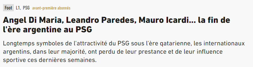 目前巴黎队内有梅西、迪马利亚、伊卡尔迪和帕雷德斯等阿根廷球员。他们是卡塔尔财团入主巴黎后的标志性球员,但最近几周他们失去了存在感和竞技影响力。