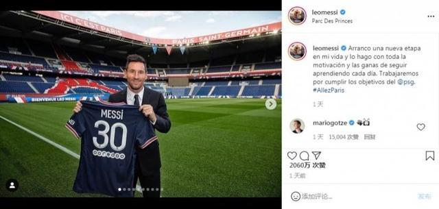 优直播讯 北京时间昨天,梅西在出席了巴黎的新闻发布会后,更新了自己加盟巴黎圣日耳曼的Instagram动态,目前这条这条动态的点赞数已经突破了2000万。
