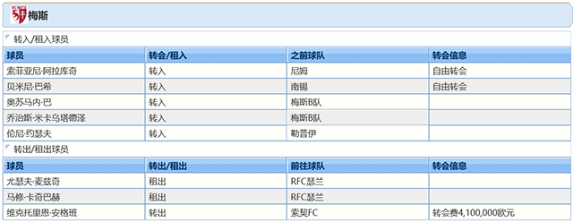2021-22赛季梅斯球员调整情况: